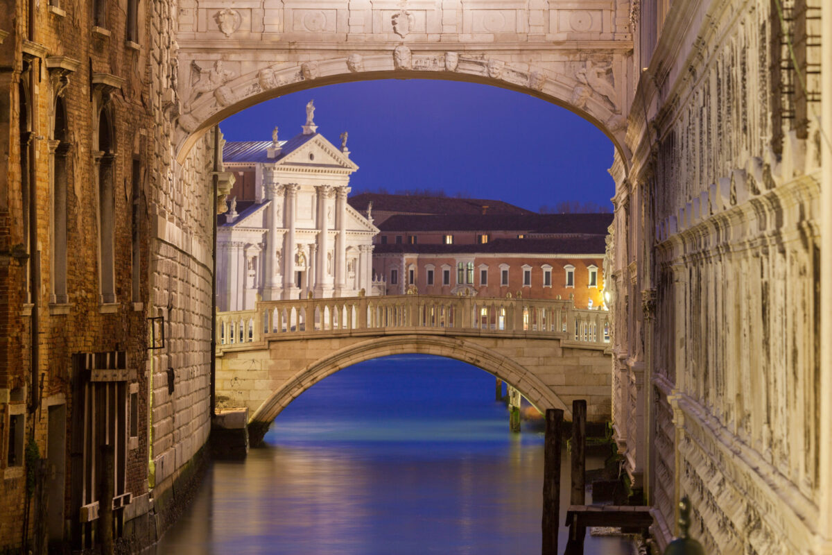 Cross the Bridge of Sighs, named for the sorrowful sighs of prisoners glimpsing their final view of freedom. Enjoy stories like that of Giacomo Casanova, whose legendary escape added a dash of romance and rebellion to this imposing complex.